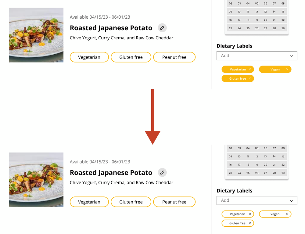 For example, the vegan user pointed out that if the vegan dietary label is highlighted, then the vegetarian, egg free, and dairy free labels should all automatically be highlighted. This was a great tip to help save time for the restaurants who are using these labels.